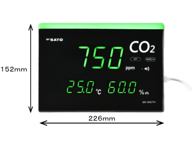 本器はCO2濃度と共に温度、湿度も測定します。快適環境には適切な温度・湿度管理も重要です。